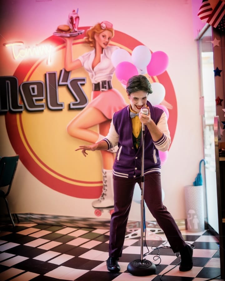 Tommy Mel’s, con su estética retro y su atmósfera animada, fue el lugar ideal para recrear el universo de Gotham City. Los colores vibrantes y la decoración retro dieron vida a la magia del cómic y el cine, convirtiendo la sesión en una experiencia inolvidable para la pareja.
