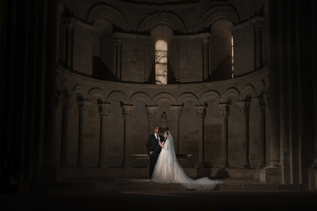 La pareja se encontraba emocionada y radiante para hacer la postboda en Castillo de Loarre, luciendo atuendos elegantes y abrigados para enfrentar el frío invierno. Sus rostros iluminados por la felicidad mientras recorrían juntos cada rincón del castillo, capturando momentos llenos de ternura bajo la lente de la cámara.